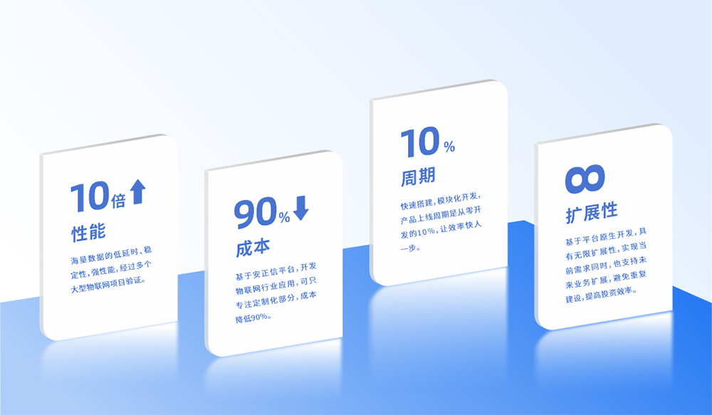 基于安正信平臺,開發物聯網行業應用,可只專注定制化部分,成本降低90%。
